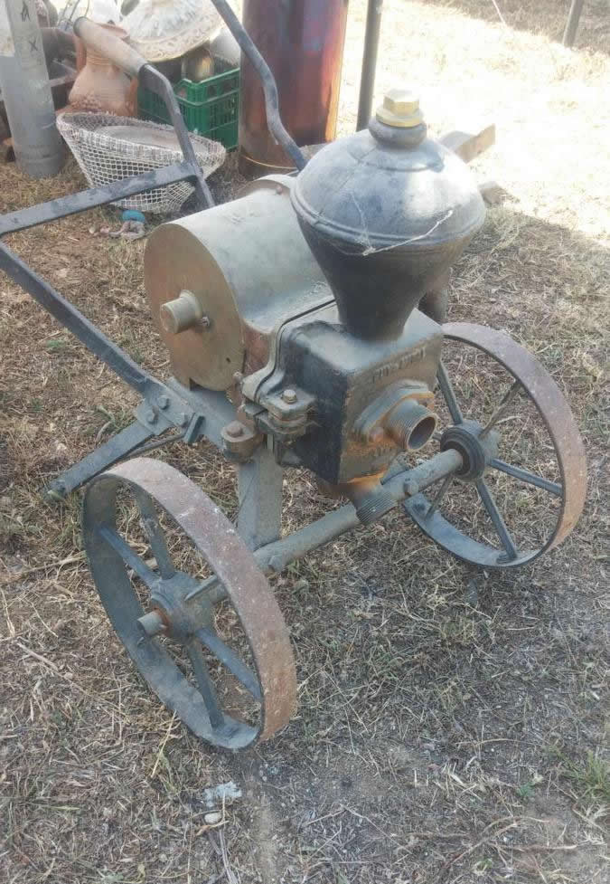 Bomba de agua , antigua bomba de agua con carretilla.
