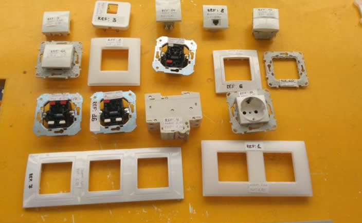 Apliques, 138 macos de 2 elementos simon, 60 marcos 1 elemento, 40 marcos tapa toma telefono, 20 interruptores, 10 barras hager puente magnetico 2 polos, 213 marcos 1 elemento euna, 30 marcos 3 elementos, 56 tomas de telefono, 45 tapas ciega eunea, 46 bastidor 2 modulos, 66 toma enchufe, 30 interruptores eunea, 6 dobles conmutador eunea, 6 cruzamientos eunea, 3 mecanismos simon 75101, 2 mecanismo simon 75201, 9 mecanismo simon 75251.
