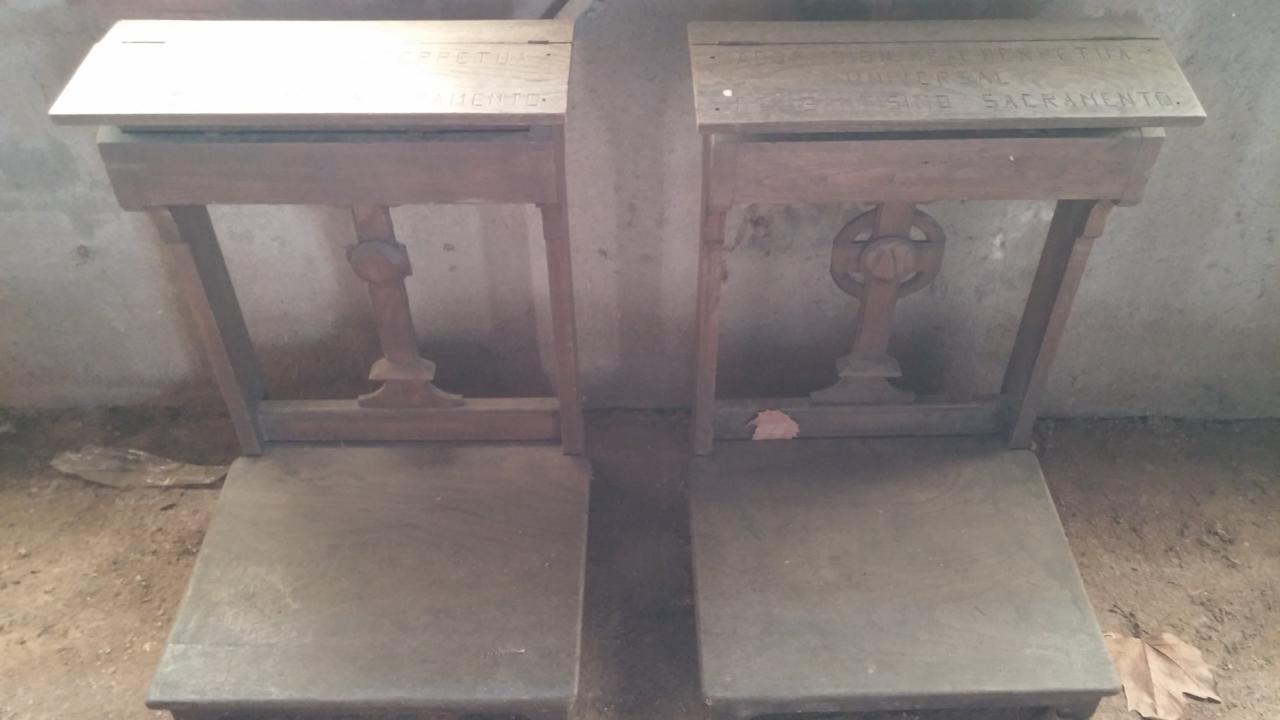 Lote 2 unidades. Mueble de iglesia reclinatorio de madera antiguo. Medidas 58cm largo x 53cm ancho x 80cm alto.
